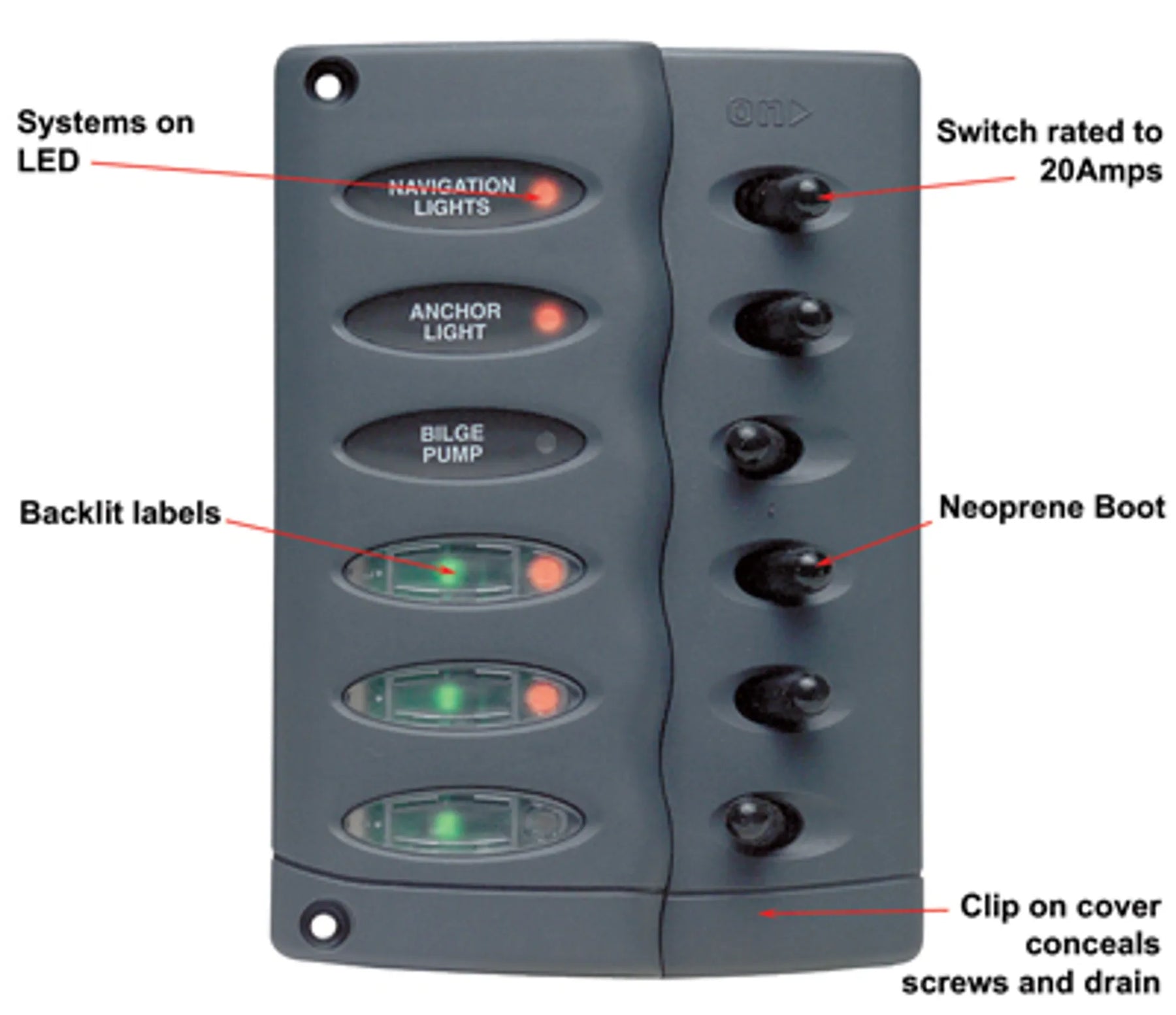 BEP Switch Panel DC Contour Waterproof 6xOn/Off Gr