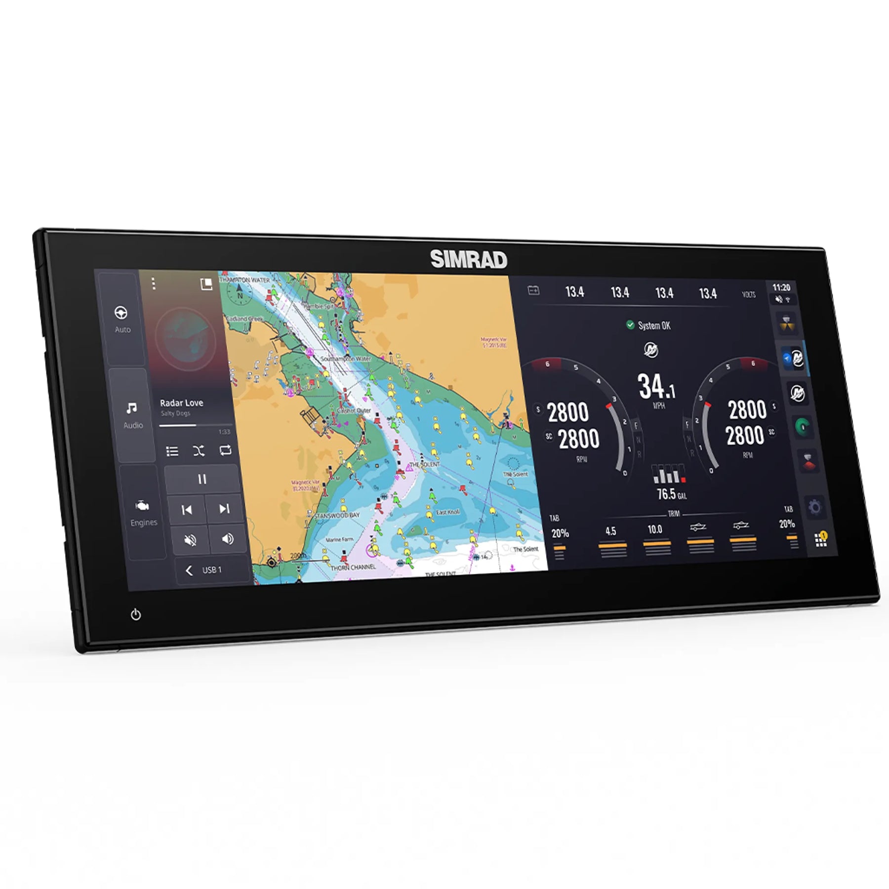 NSX® ULTRAWIDE är optimerad för C-MAP® DISCOVER™ X och REVEAL™ X-sjökort, vilket ger detaljerade kartor och tredubblad hastighet för automatisk ruttdragning jämfört med tidigare modeller. Med den ultrabreda SolarMAX™ IPS HD-pekskärmen får du extrema visningsvinklar och en intuitiv installationsguide hjälper dig att snabbt komma igång. Dess modulära design ger möjlighet att anpassa med tillbehör efter dina behov.