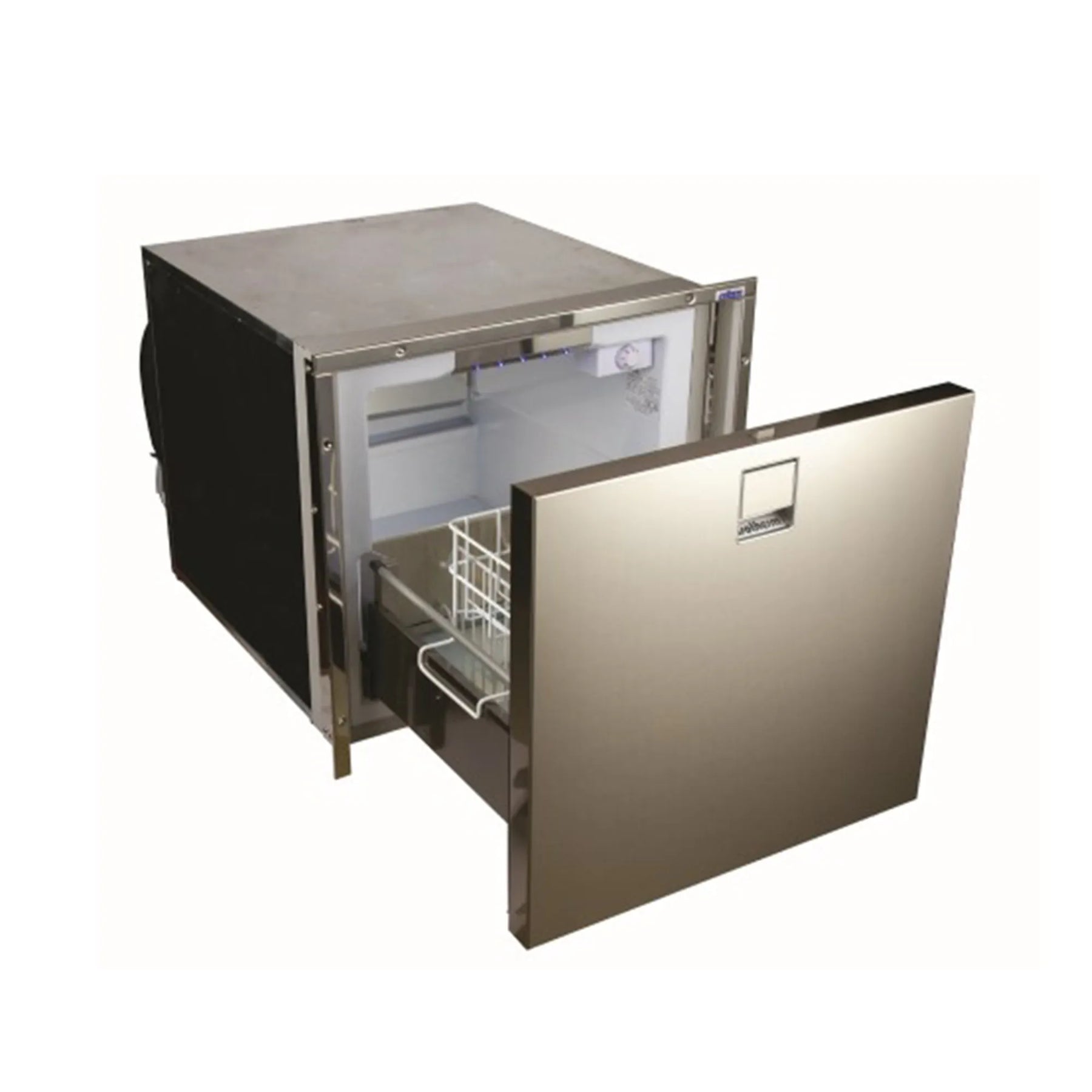 DR100 är utrustad med en framåtfälld lådlösning, vilket gör den lättillgänglig och praktisk att använda. Kylen har en robust lådmekanism, ett smart innerkorgssystem för effektiv organisering samt fem blå LED-lampor, som skapar en modern och behaglig belysning invändigt. Den integrerade tresidiga infällnadsramen i rostfritt stål möjliggör sömlös installation i olika miljöer, medan möjligheten till en fjärrmonterad kompressor upp till 1,1 meter bort från kylskåpet ger ytterligare flexibilitet vid installation.