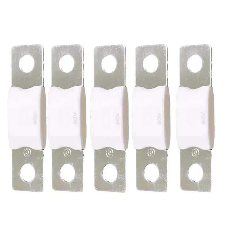 Säkringen har ett lågt spänningsfall och ett kallt motstånd på 0,5 mΩ, vilket säkerställer en energieffektiv drift med minimal förlust av elektrisk energi. Den är särskilt lämplig för applikationer såsom växelriktare, stora batteribanker och elektriska distributionssystem i kommersiella fordon och båtar.