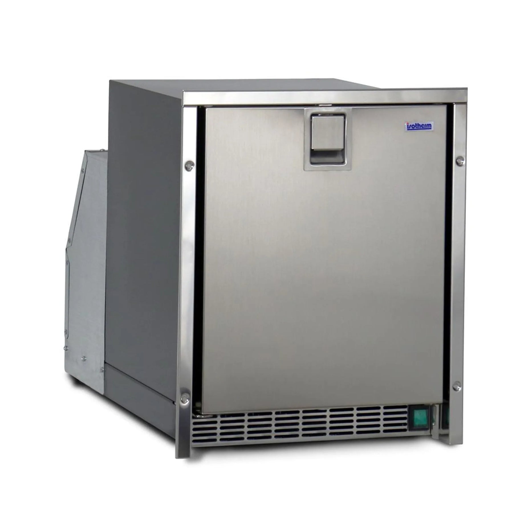 Den kraftiga fläkten och ventilationen med genomströmning bidrar till en effektiv och tyst drift, medan det rostfria dörr- och kabinettmaterialet garanterar både hållbarhet och en modern design. En särskild egenskap hos denna modell är den reducerade höjden, tack vare att kompressorn är monterad bakom en låg design. Detta gör att maskinen kan placeras i trängre utrymmen där standardmodeller inte får plats. Monteringsram ingår för enkel installation. Isotherm Ice Maker 230V INOX Låg är den idealiska lösningen för dem som behöver effektiv isproduktion i ett kompakt format.