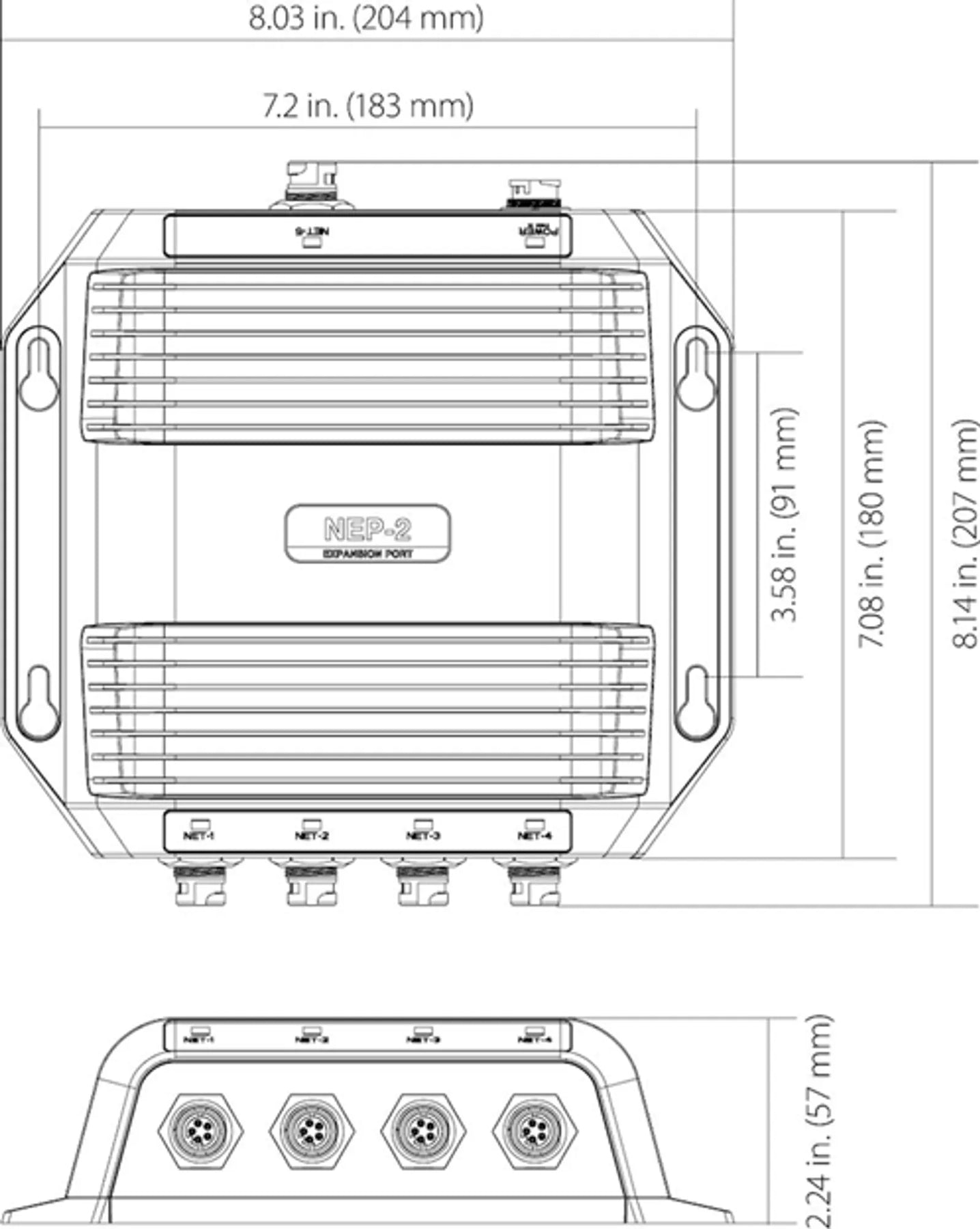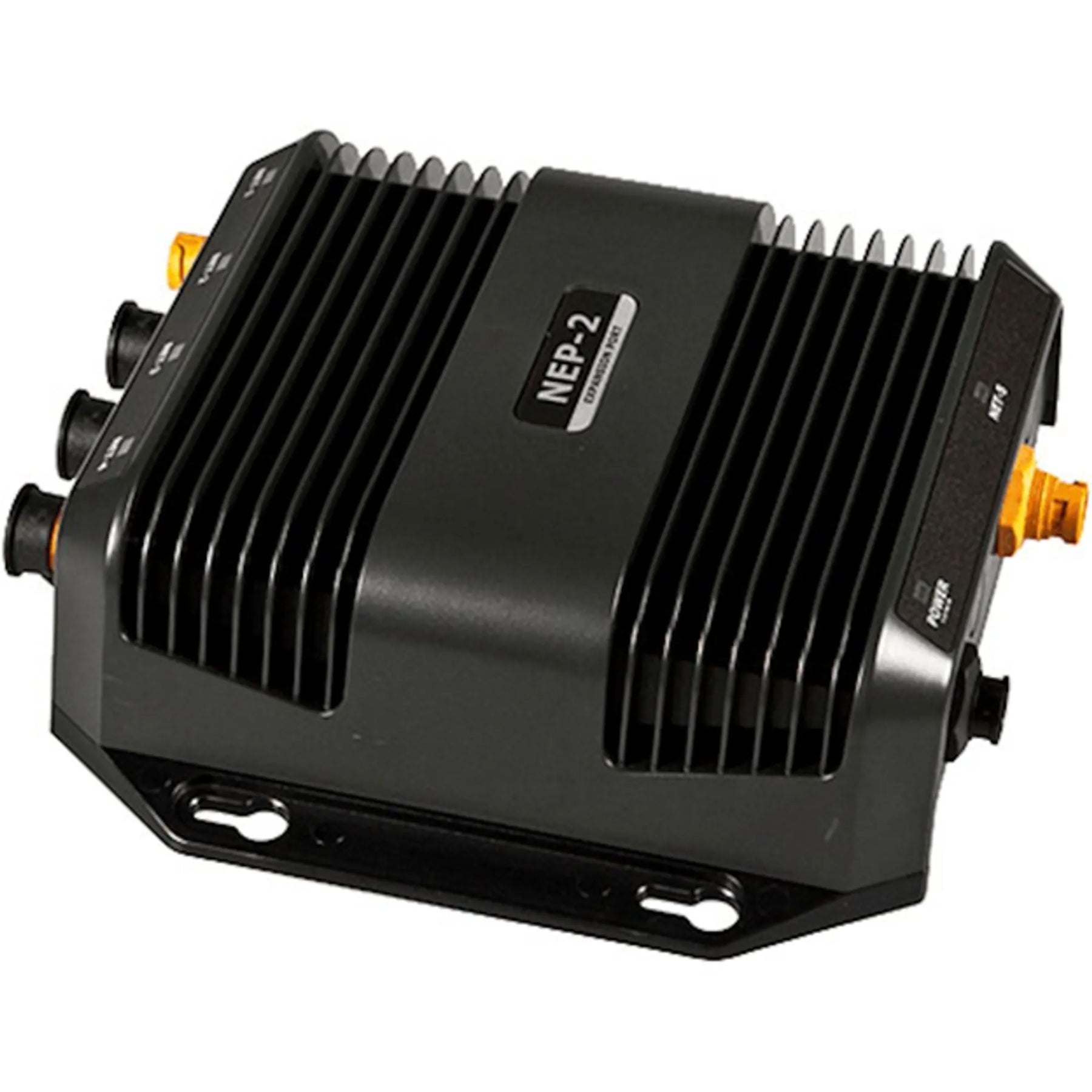 NEP-2 är en nätverksexpansionsport som ger fem Ethernet-portar för att enkelt utöka ditt system med fler displayer och tillbehör. Denna enhet gör det möjligt att koppla samman flera displayer ombord för att dela sjökort, waypoints, rutter och inbyggda ekolodsfunktioner, vilket ger en sömlös upplevelse mellan enheterna. Du kan även ansluta Ethernet-kompatibla tillbehör, som ekolodsmoduler och radarsystem, och få åtkomst till dessa från vilken display som helst ombord.