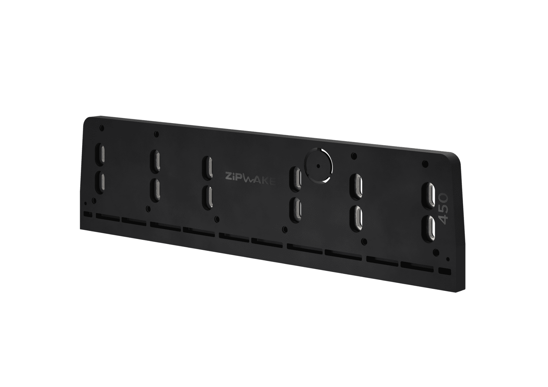 Zipwake-adapterplattor är utformade för att minimera de anpassningar som krävs på akterspegeln vid uppgradering till Zipwake Series S eller Series S Pro på båtar som redan är utrustade med BTS-interceptorer, eller som har akterspeglar med utskjutande bottenplattor. Just denna adapterplatta passar 450-S interceptorn.