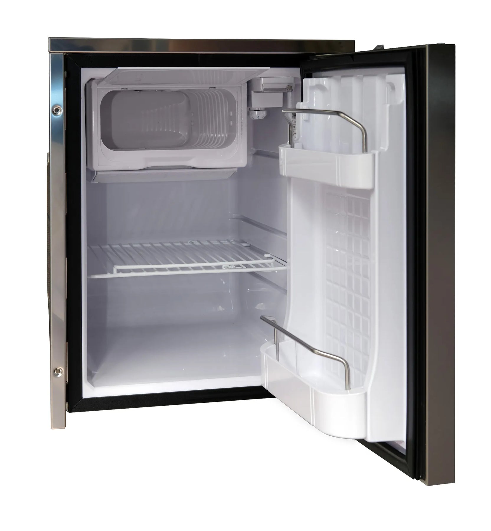 Isotherm CR 42 Inox är ett kylskåp som kombinerar kompakt storlek med hög funktionalitet och stil. Med en total volym på 42 liter, inklusive ett 4-liters frysfack med magnetisk lucka, erbjuder detta kylskåp tillräckligt med utrymme för dina kylbehov, oavsett om det gäller i båten, husbilen eller andra små utrymmen.