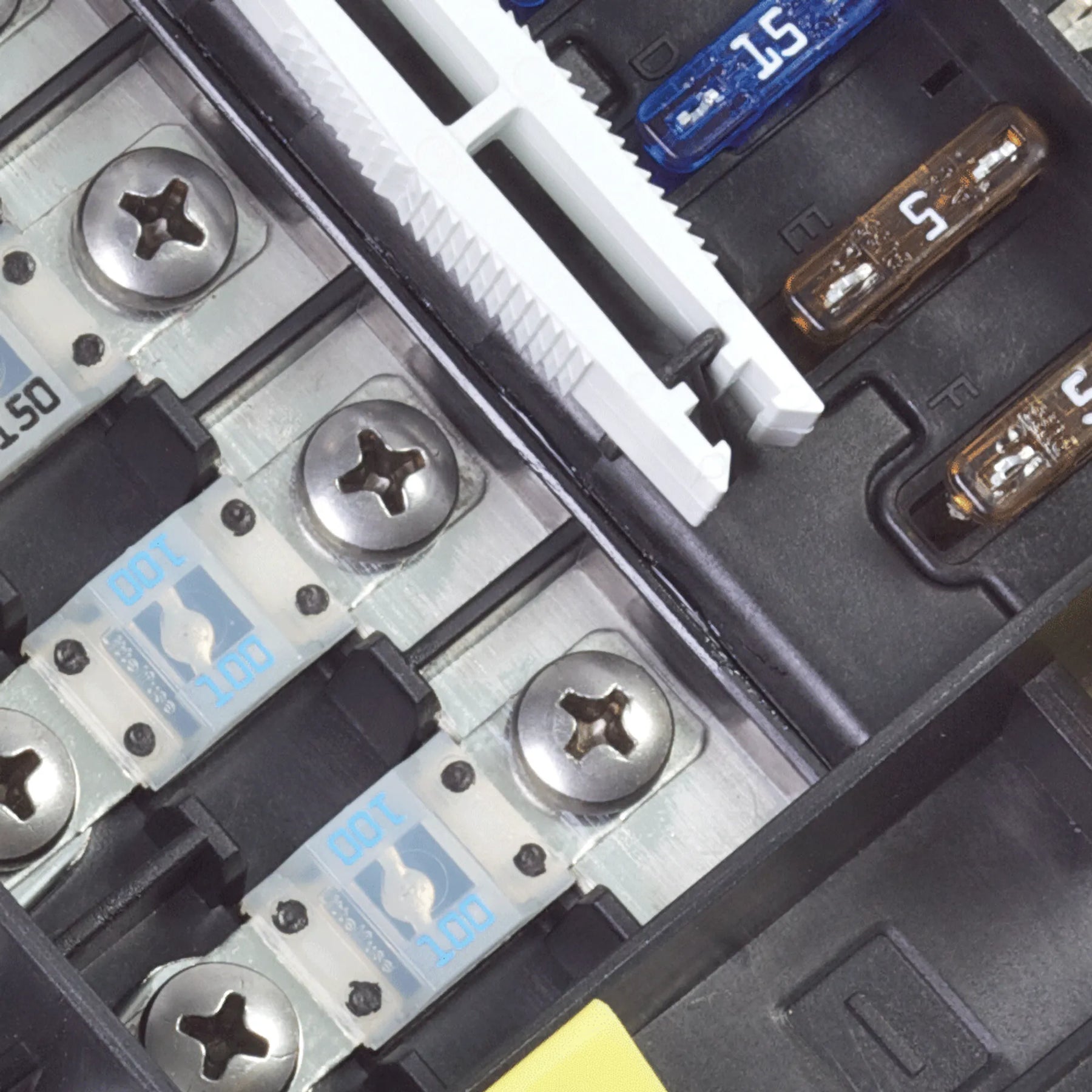Den förseglade kåpan skyddar säkringarna från den tuffa marina miljön och uppfyller ABYC/USCG-kraven för isolering och säkerhet. En integrerad negativ kopplingsskena ger en gemensam anslutningspunkt för negativa ledningar, vilket förenklar installationen och minskar risken för felkopplingar. Med en smart design finns det även förvaring för två extra ATO®/ATC®-säkringar, två extra AMI®/MIDI®-säkringar samt monteringsskruvar. En praktisk säkringsavdragare ingår för enkel borttagning av ATO®/ATC®-säkringar, och tydliga etiketter med skrivmöjlighet gör det enkelt att identifiera kretsarna.
