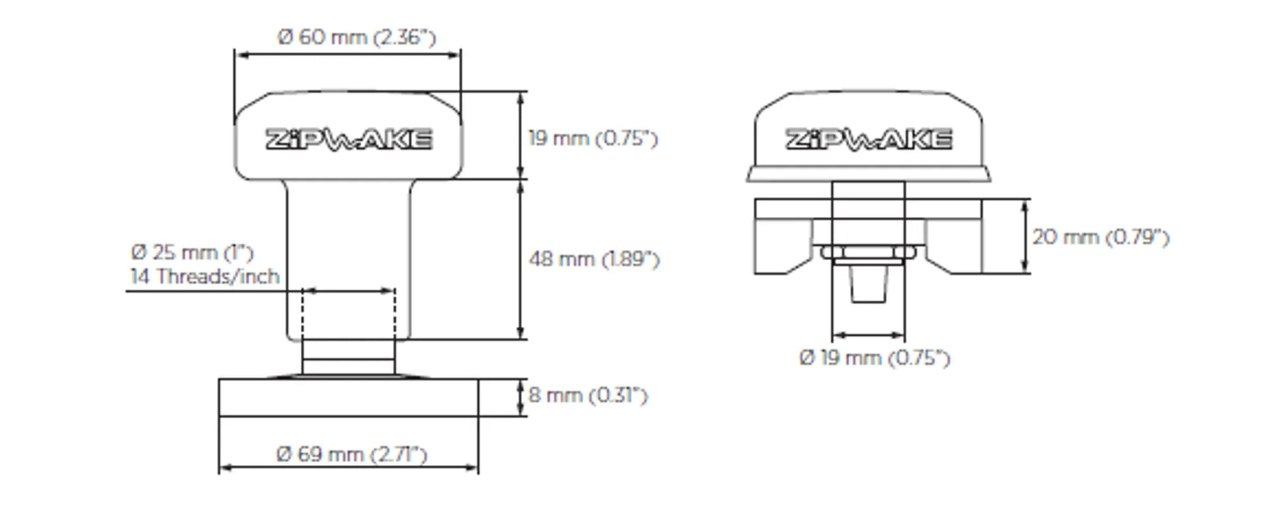 Dess 5 meter långa kabel kan förlängas upp till 15 meter med Zipwakes förlängningskablar. Fäste ingår.