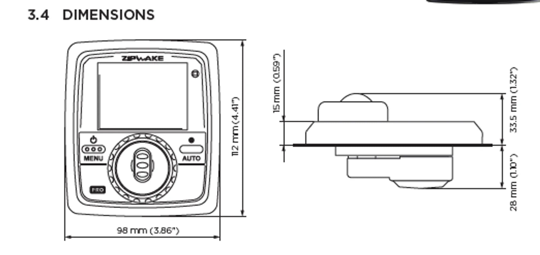 Zipwakes kontrollpanel för PRO-serien är utvecklad för att vara enkel, intuitiv och helt fokuserad på att ge föraren en trygg och behaglig upplevelse på vattnet. De två reglagehjulen gör manuell trim-, lutnings- och kurskontroll snabb och precis, men i de flesta fall sköter systemet allt automatiskt via ett tryck på AUTO.
