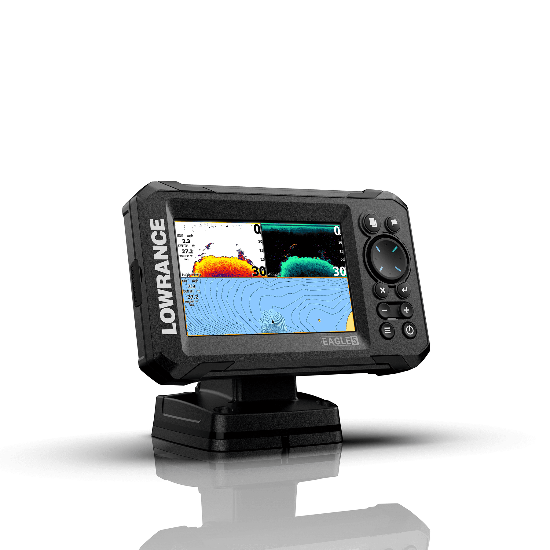 Lowrance Eagle 5 SplitShot™ ROW is a state-of-the-art fishfinder designed to enhance your fishing experience by combining advanced technology with user-friendly features. This model is ideal for sport fishermen who want a reliable and accurate fishfinder solution with improved sharpness and detail. With a 5-inch IPS screen that provides high-resolution images and clear visibility from all angles, even in bright sunlight and through polarized glasses, the Eagle 5 offers optimal performance in all lighting conditions.