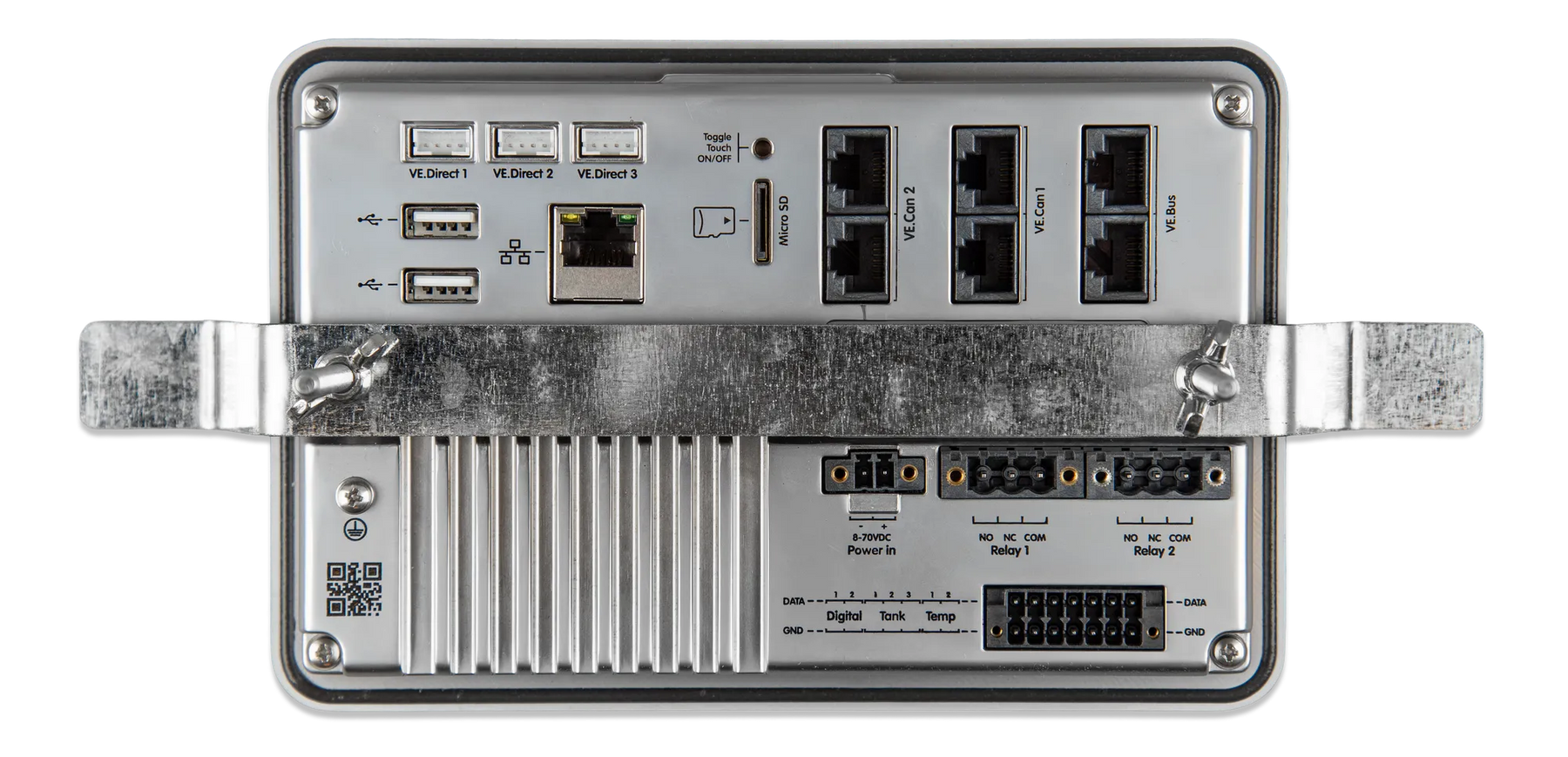 Installation is easy thanks to a flush panel design and the included mounting parts. All ports are easily accessible from the back and the device is designed to integrate smoothly into your system. Ekrano GX is equipped with Bluetooth for quick configuration via the VictronConnect app.