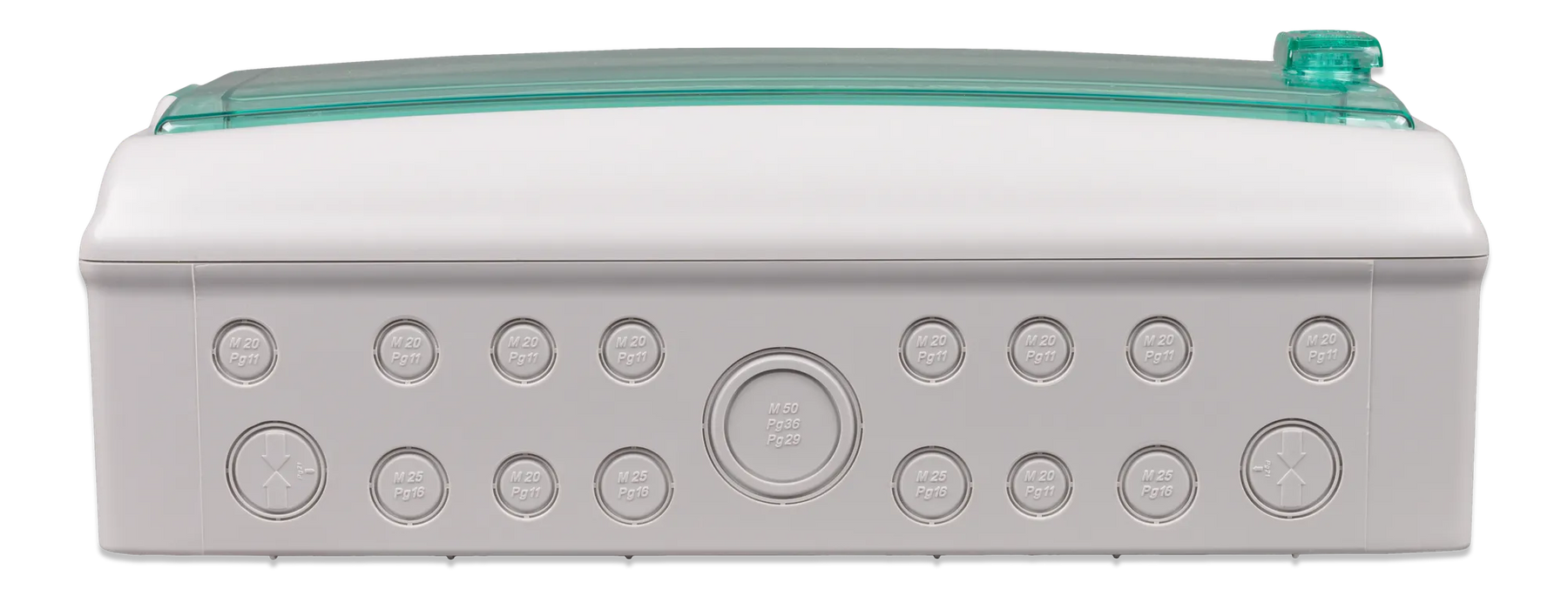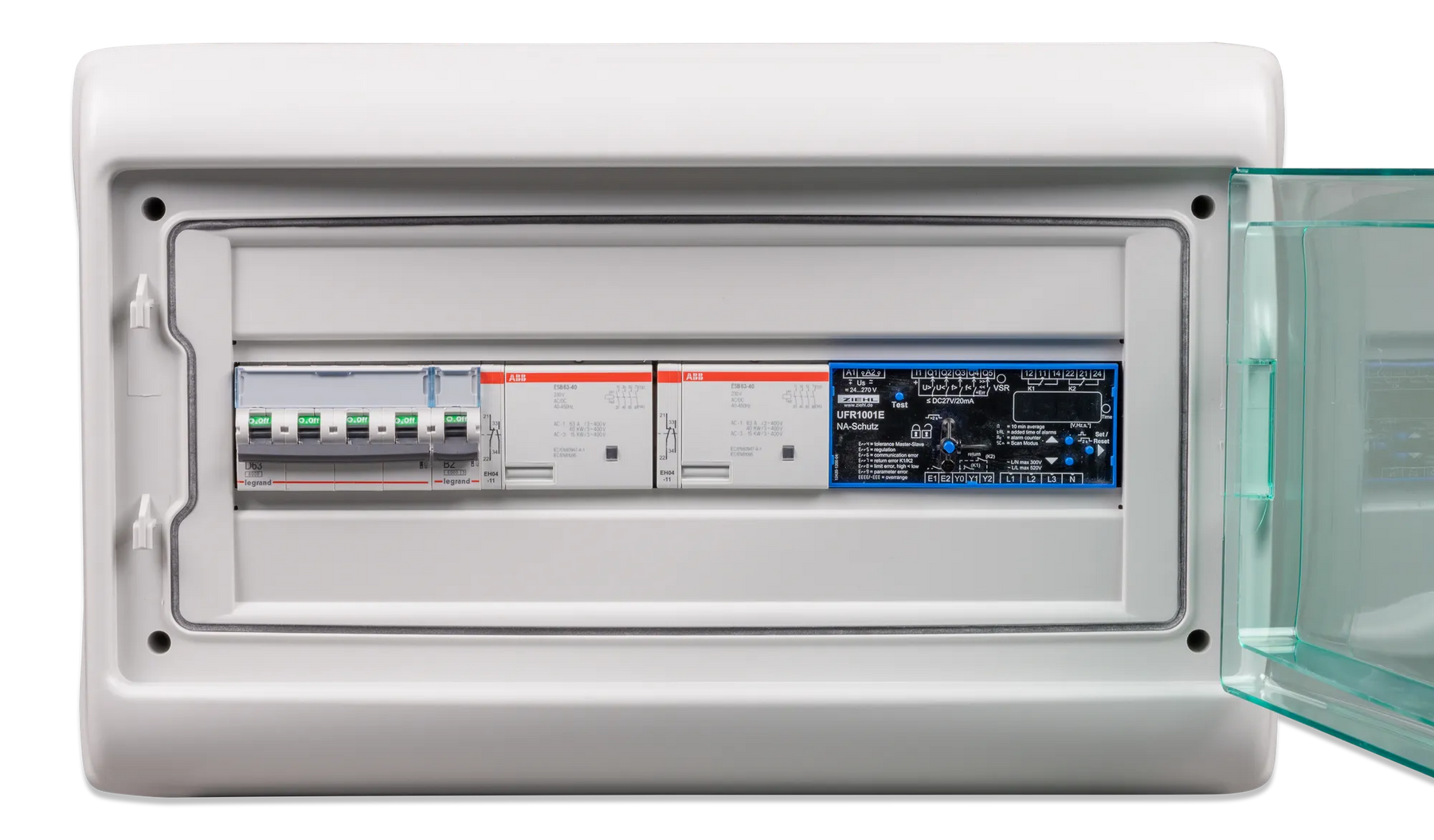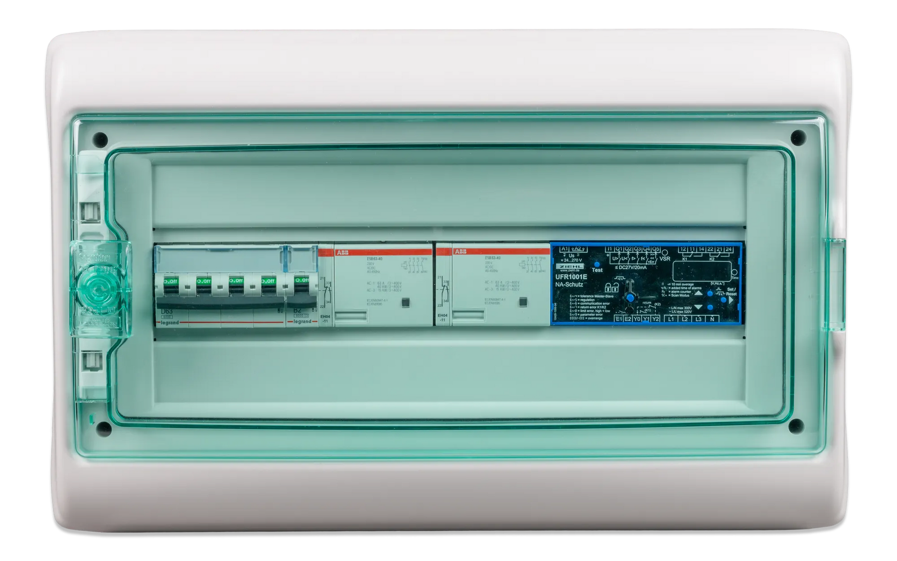 Enheten kombinerar flera viktiga komponenter i ett praktiskt och hållbart IP65-klassat hölje. Den innehåller en Ziehl UFR1001E för skydd mot ödrift, två linjeanslutna kontaktdon och en huvudkretsbrytare. Dessa komponenter arbetar tillsammans för att säkerställa en säker och stabil anslutning till nätet, samtidigt som de skyddar mot potentiella risker vid nätbortfall.