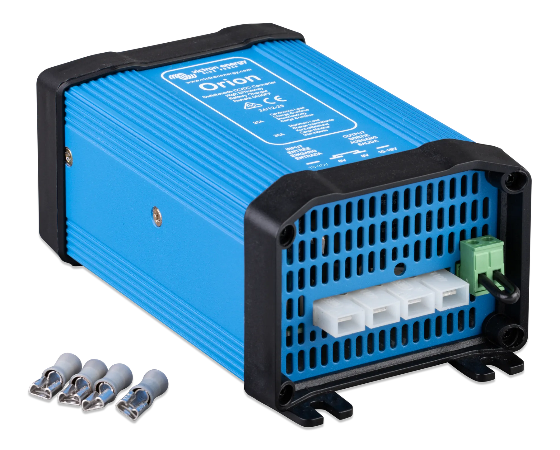 Orion 24/12-25A har en justerbar utgång, vilket innebär att den även kan användas som en batteriladdare för att ladda exempelvis ett 24V-startbatteri eller ett extrabatteri i ett 12V-system. Detta ger ytterligare flexibilitet och gör omvandlaren till en mångsidig lösning för olika batterisystem.