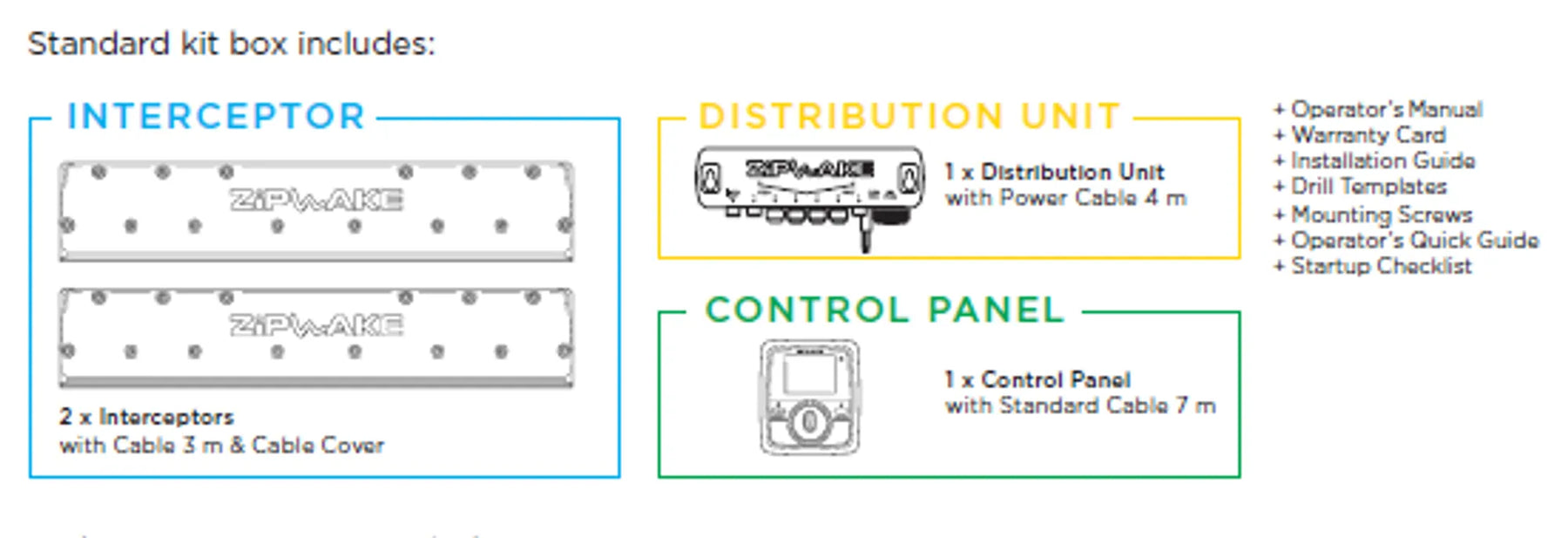 Zipwake Kit Box Serie S Chine innehåller allt du behöver för att montera ett komplett, automatiskt trimsystem. Kitet bygger på två interceptorer ur Serie S, anpassade för planande och halvplanande båtar mellan ca 6 och 15 meter.